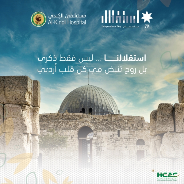 مستشفى الكندي يهنئ جلالة الملك وولي العهد بمناسبة عيد الاستقلال 79