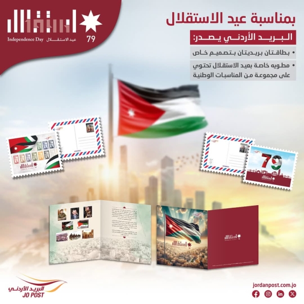 البريد الأردني يطرح بطاقات بريدية تذكارية بمناسبة عيد الاستقلال