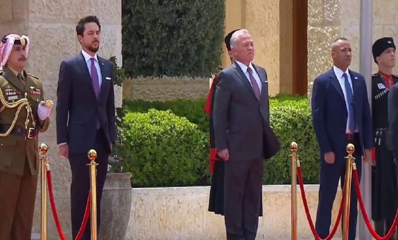 الملك يشهد مراسم رفع العلم في قصر الحسينية