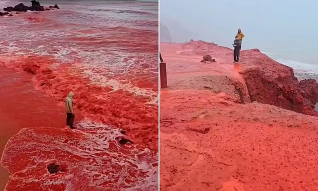 "المطر الدموي".. جزيرة هرمز الإيرانية تتحول إلى اللون الأحمر