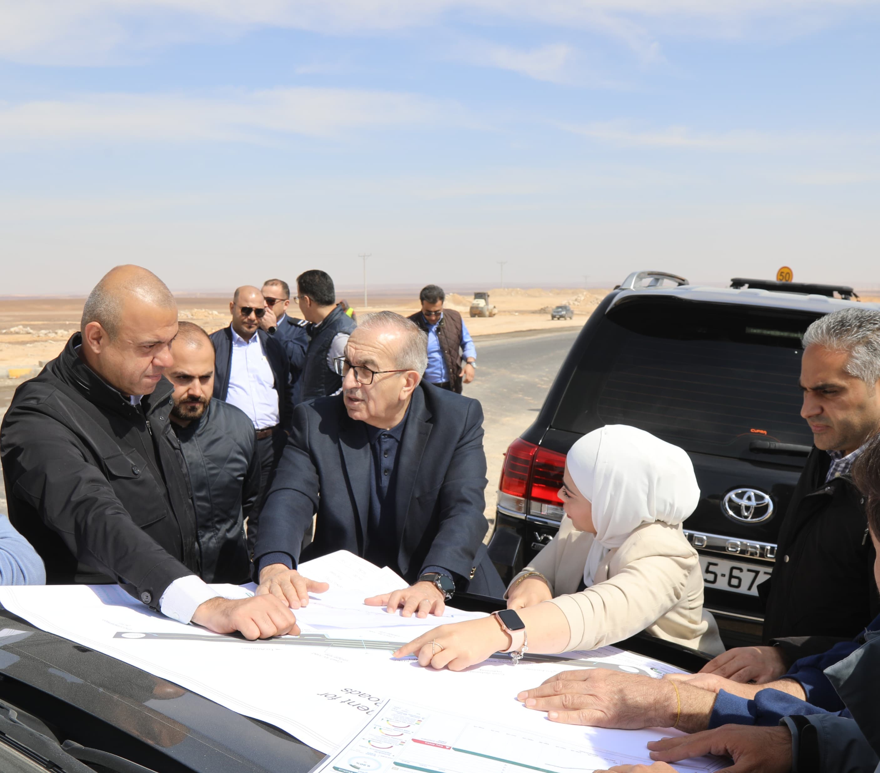 وزير الأشغال يتفقد أعمال صيانة طريق الموقر - الأزرق