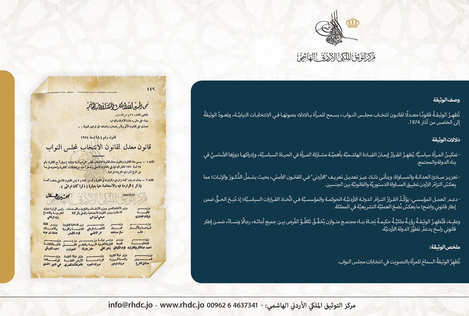 التوثيق الملكي يعرض وثيقة لمنح المرأة حق الانتخاب في مجلس النواب