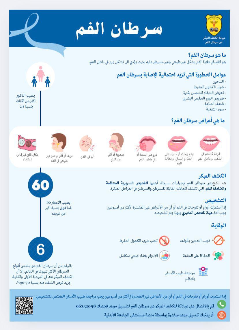 عيادة للكشف المبكر عن سرطان الفم في مستشفى الجامعة الأردنية
