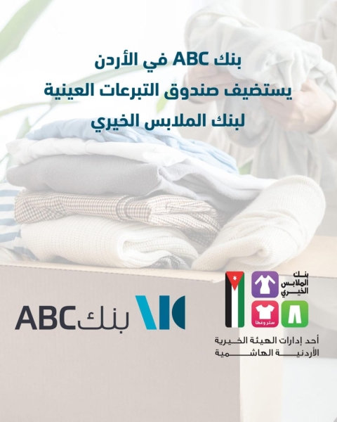 بنك ABC في الأردن يستضيف صندوق التبرعات العينية لبنك الملابس الخيري