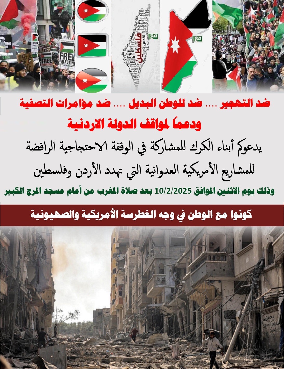 أبناء الكرك يدعون لوقفة احتجاجية ضد "مشروع ترمب لتصفية القضية الفلسطينية "