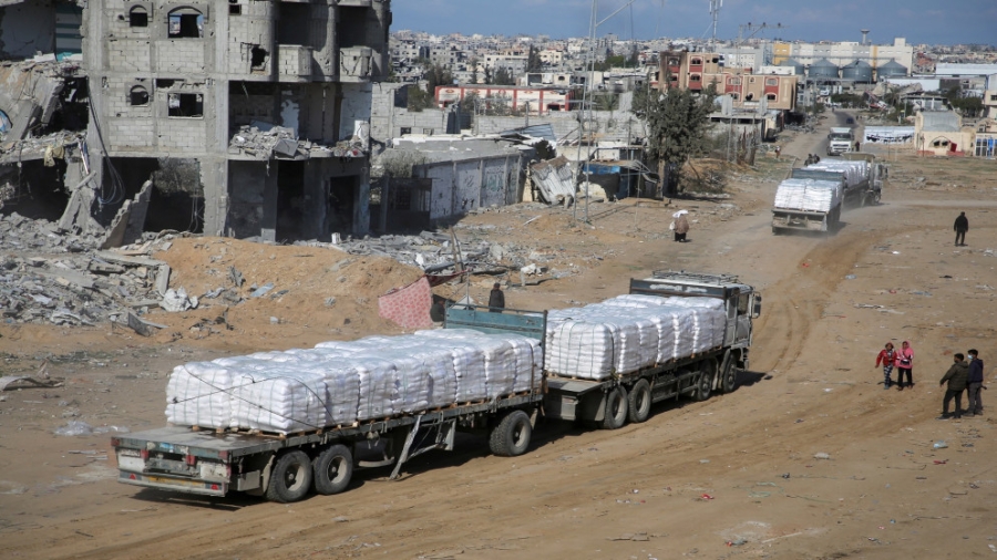 إرسال قافلة من 80 شاحنة إلى قطاع غزة توفر إغاثة فورية لأكثر من 300 ألف نازح