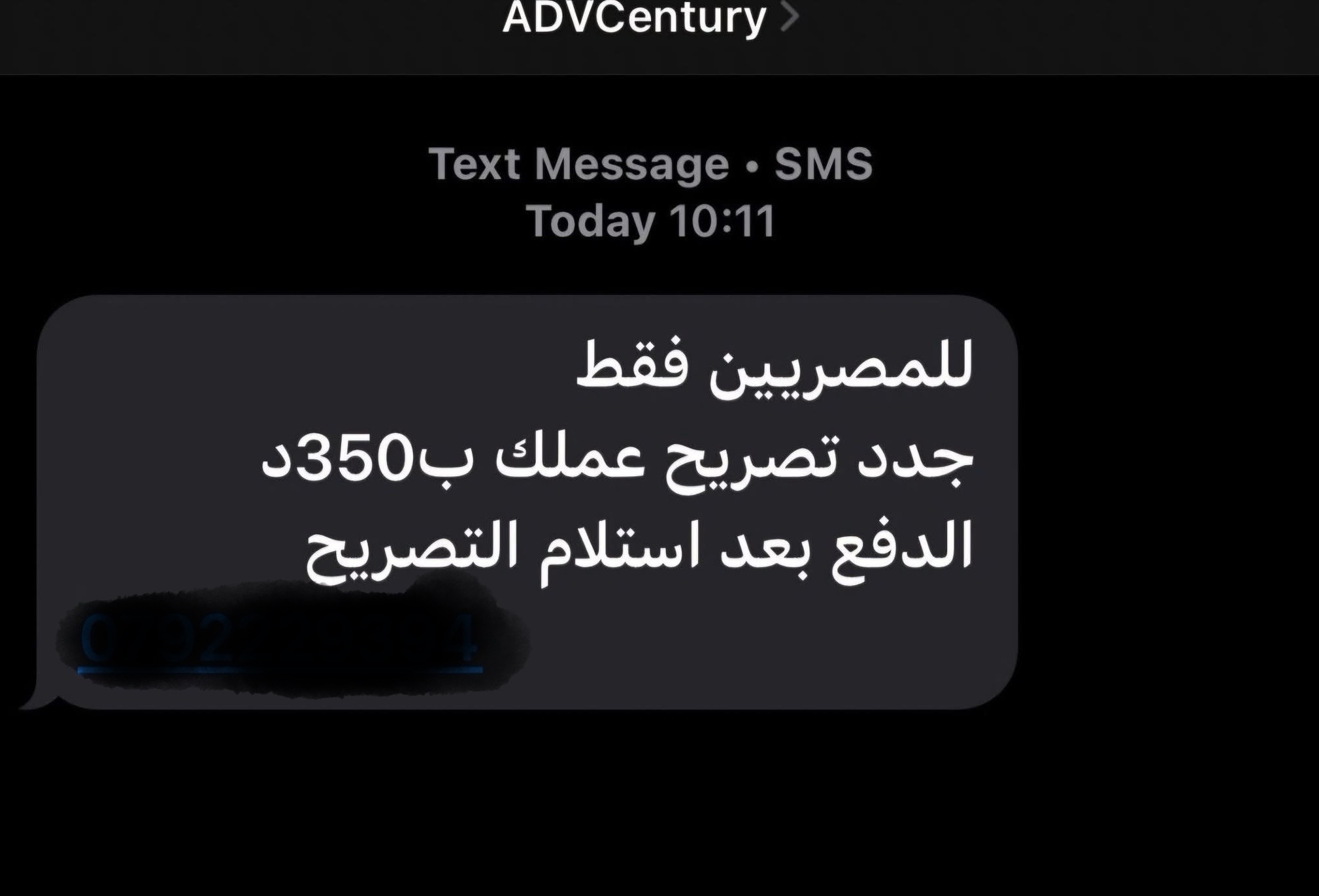 وزارة العمل تحذر من رسالة نصية وهمية تدعي تجديد تصاريح العمل