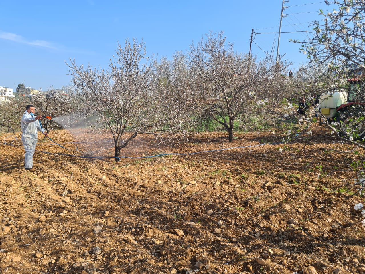 حملة في لواء الوسطية لمكافحة مرض "العفن البني" ببساتين اللوز