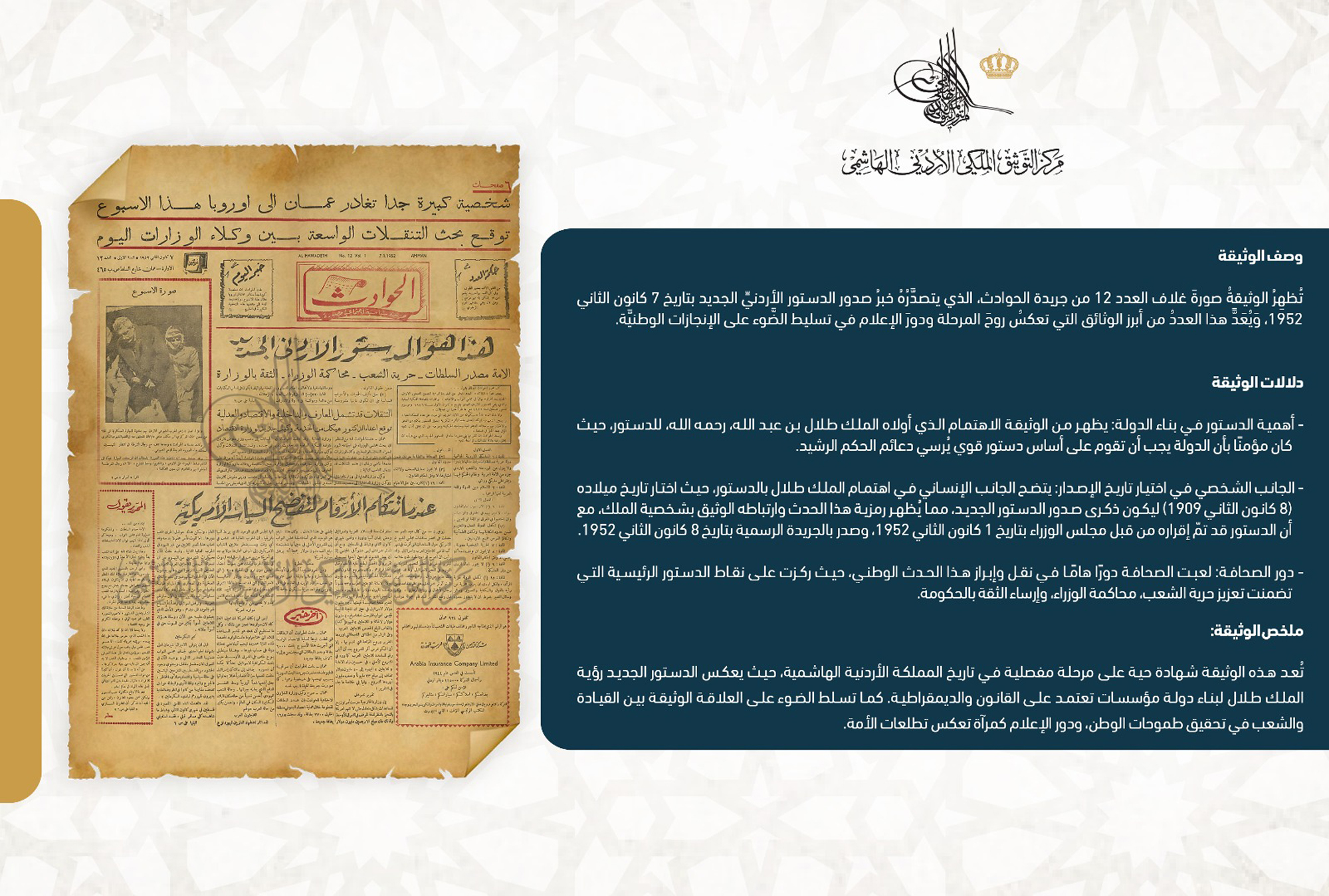 التوثيق الملكي يعرض وثيقة حول صدور الدستور الجديد