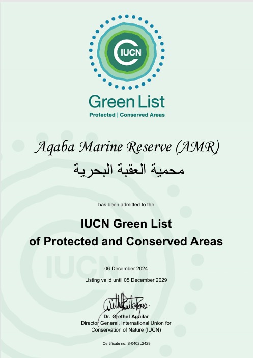 إعلان محمية العقبة البحرية ضمن القائمة الخضراء للمحميات الطبيعية