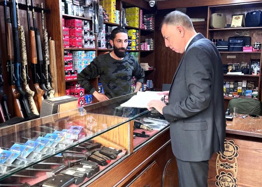 وزير الداخلية في جولة تفقدية لمحلات الأسلحة والذخائر (صور)
