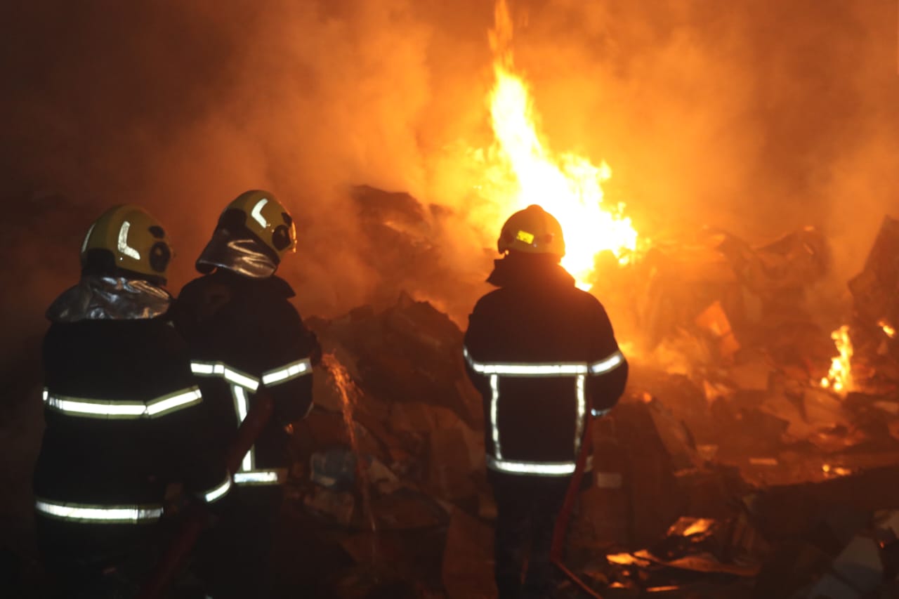 20 ساعة للسيطرة على حريق مصنع كرتون بالكرك