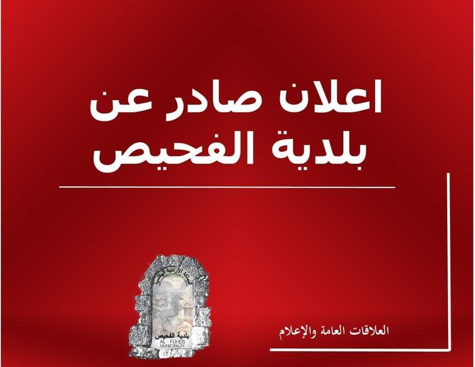 اعلان صادر عن بلدية الفحيص