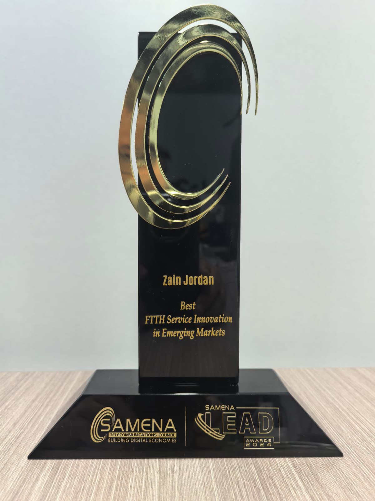 عاجل - زين الأردن تحصد جائزة الابتكار في خدمات الفايبر المنزلي في الأسواق الناشئة في جنوب آسيا والشرق الأوسط وشمال إفريقيا