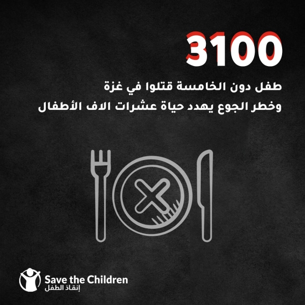 3100 طفل دون الخامسة قتلوا في غزة وخطر الجوع يهدد حياة عشرات الألاف الأطفال