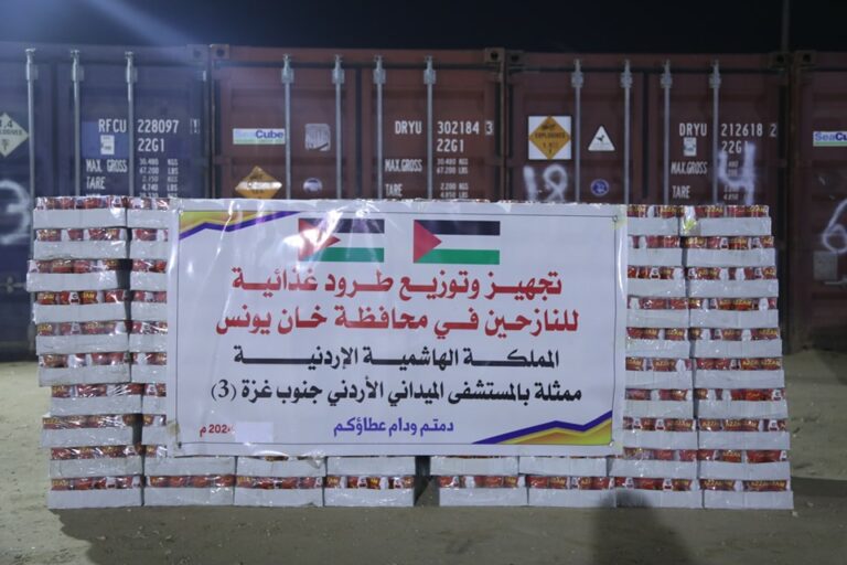 المستشفى الميداني الأردني جنوب غزة/3 يوزع مساعدات غذائية لأهالي القطاع