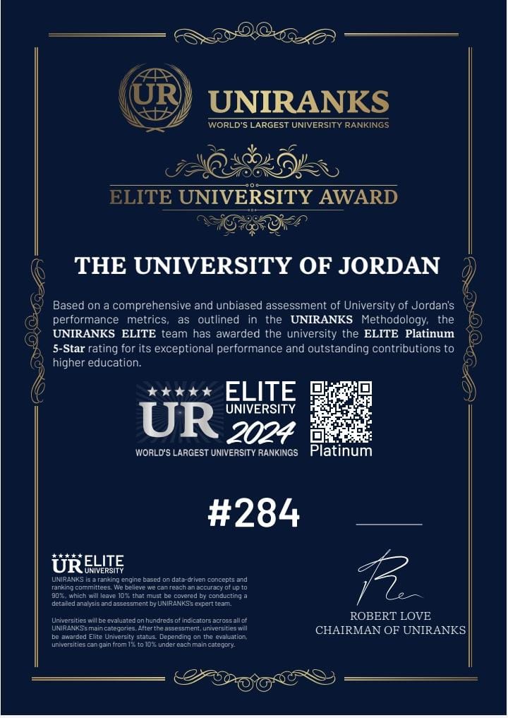 "الأردنية" تنضم لجامعات النخبة وتحرز المرتبة 284 عالميا