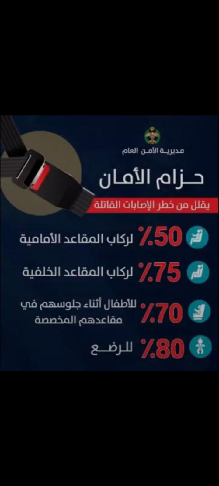 الأمن العام: حزام الأمان يقلل من خطر الإصابات القاتلة وهو "حماية لك ولمن تحب"