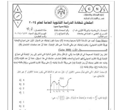 التربية تنشر أسئلة امتحان التوجيهي لمبحث الرياضيات