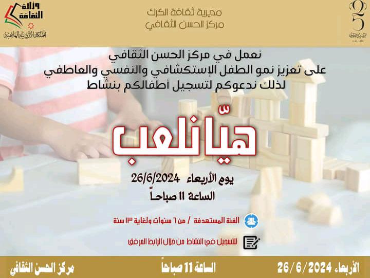 " مديرية ثقافة الكرك تقيم نشاط هيا نلعب الموجه لفئة الأطفال "