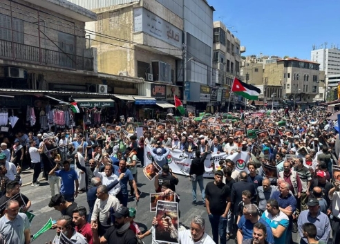 مسيرة جماهيرية هاشدة أمام المسجد الحسيني نصرةً لغزة