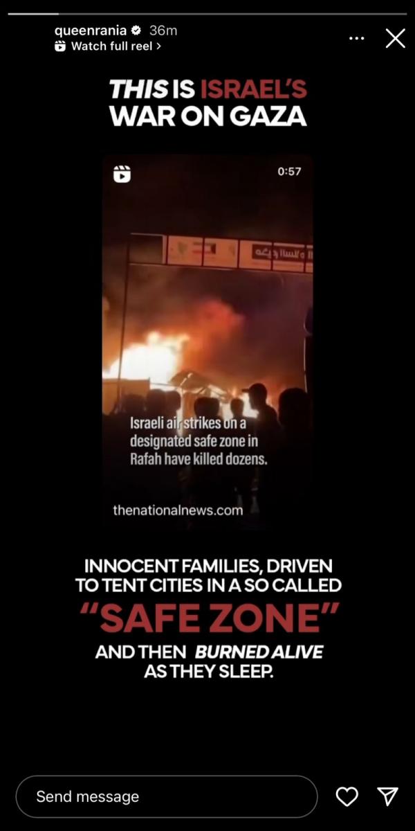 الملكة عبر أنستغرام: هذه حرب إسرائيل على غزة