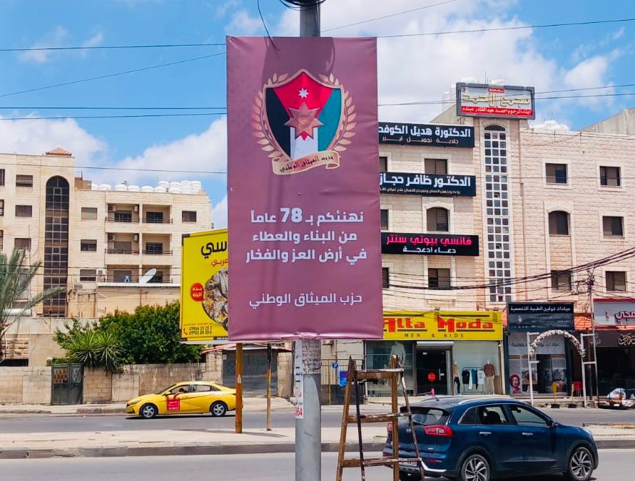 الميثاق الوطني ينشر اللافتات في المحافظات الاردنية تعبيرا عن فرحته بعيد الاستقلال الثامن والسبعين