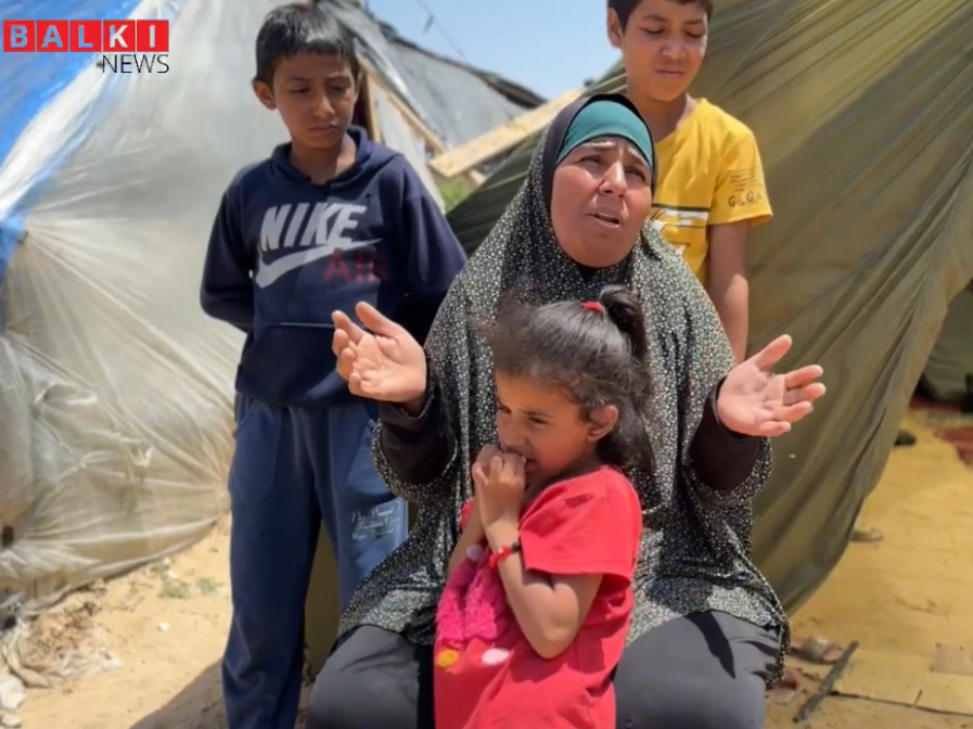 عدسة بلكي نيوز في قطاع غزة …. عائلة غزاوية تستخدم برشوت المساعدات الأردنية لصنع خيمة .