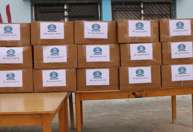 القوة البحرية والزوارق الملكية توزع طرود خير