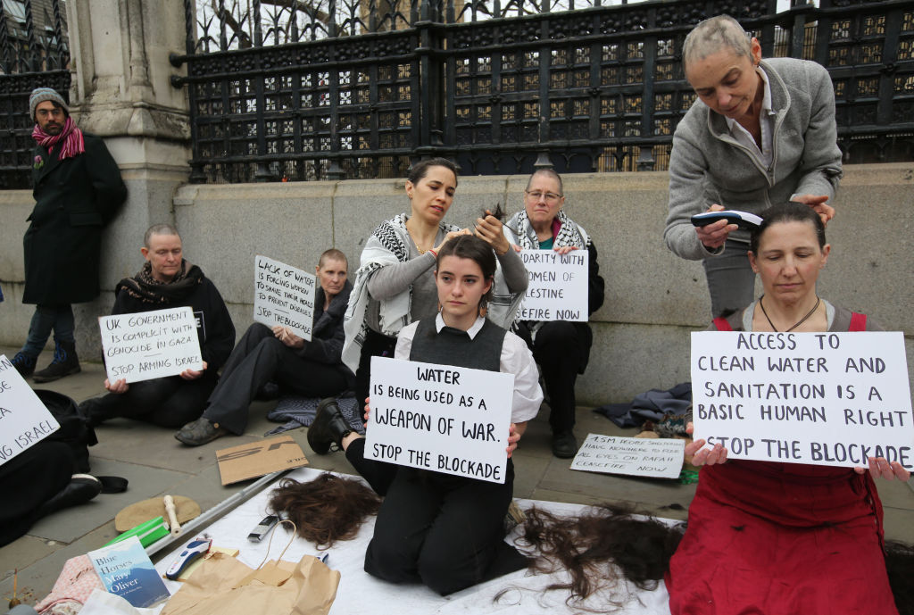 بريطانيات يحلقن رؤوسهن أمام البرلمان تضامنا مع نساء غزة – فيديو وصور