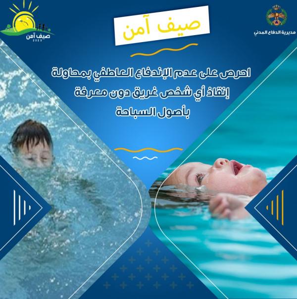الدفاع المدني للأردنيين: لا تنقذوا الغريق دون معرفة بأصول السباحة