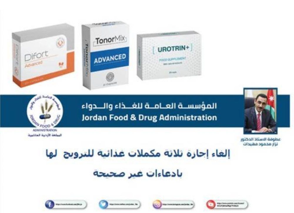 الغذاء والدواء تلغي إجازة 3 مكملات غذائية