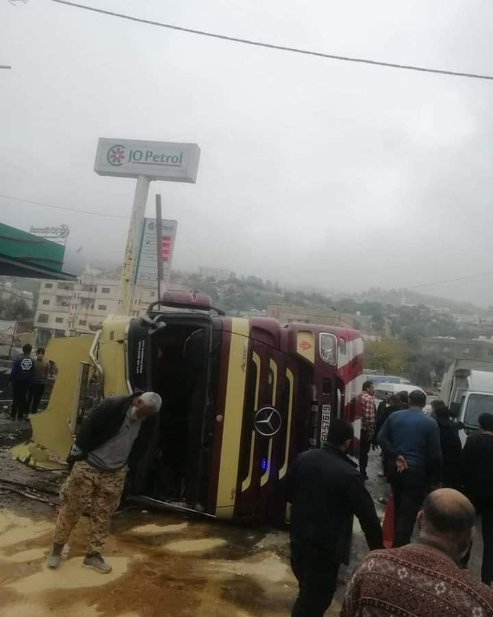 انقلاب قلاب زفته على عدة سيارات بجانب كازية عنجرة في عجلون