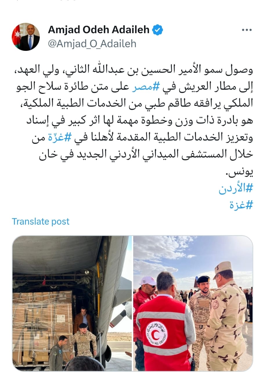 المومني: إشراف ولي العهد على المستشفى الميداني بغزة "شجاعة أردنية