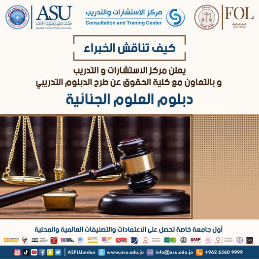 جامعة العلوم التطبيقية تطرح برنامج دبلوم العلوم الجنائية التدريبي