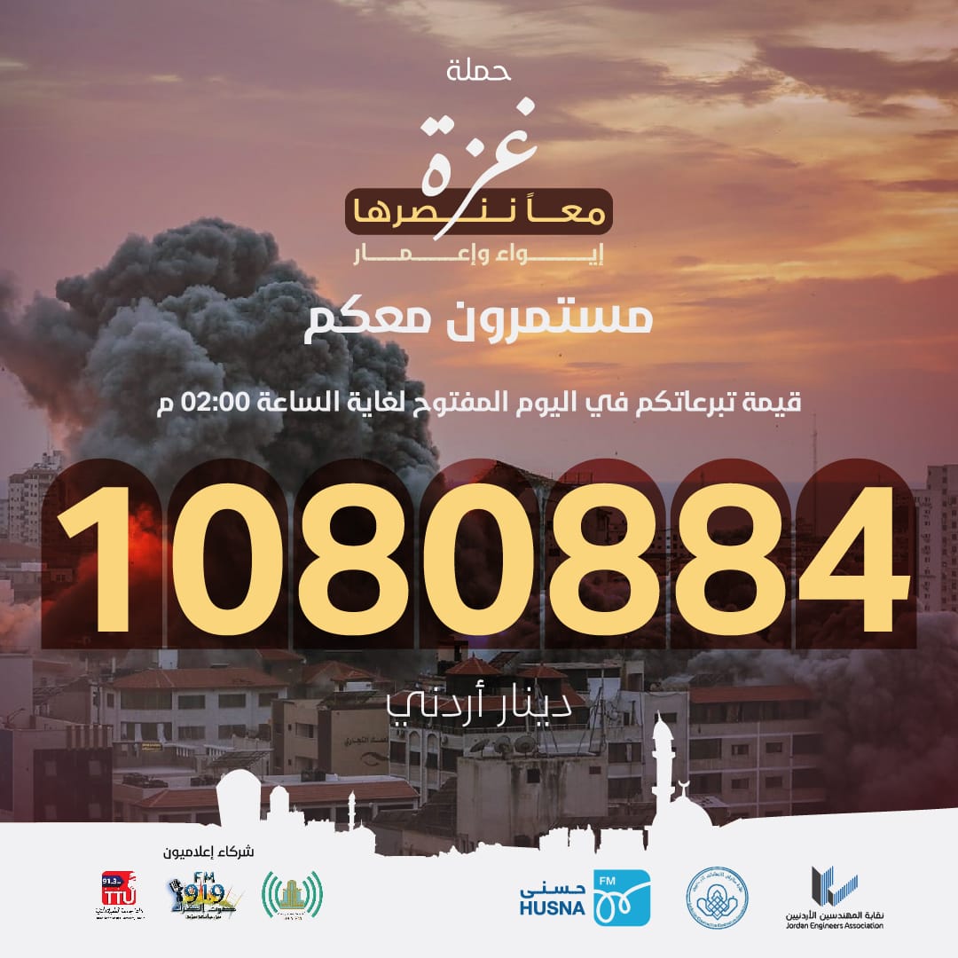 أكثر من مليون دينار قيمة تبرعات حملة "غزة معا ننصرها" حتى 2 بعد الظهر