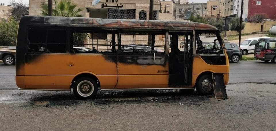 النيران تلتهم "باص مدرسة" في عمان - صور