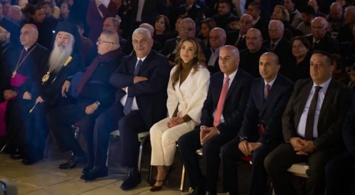 الملكة رانيا تشارك أهالي الفحيص بإضاءة شجرة عيد الميلاد