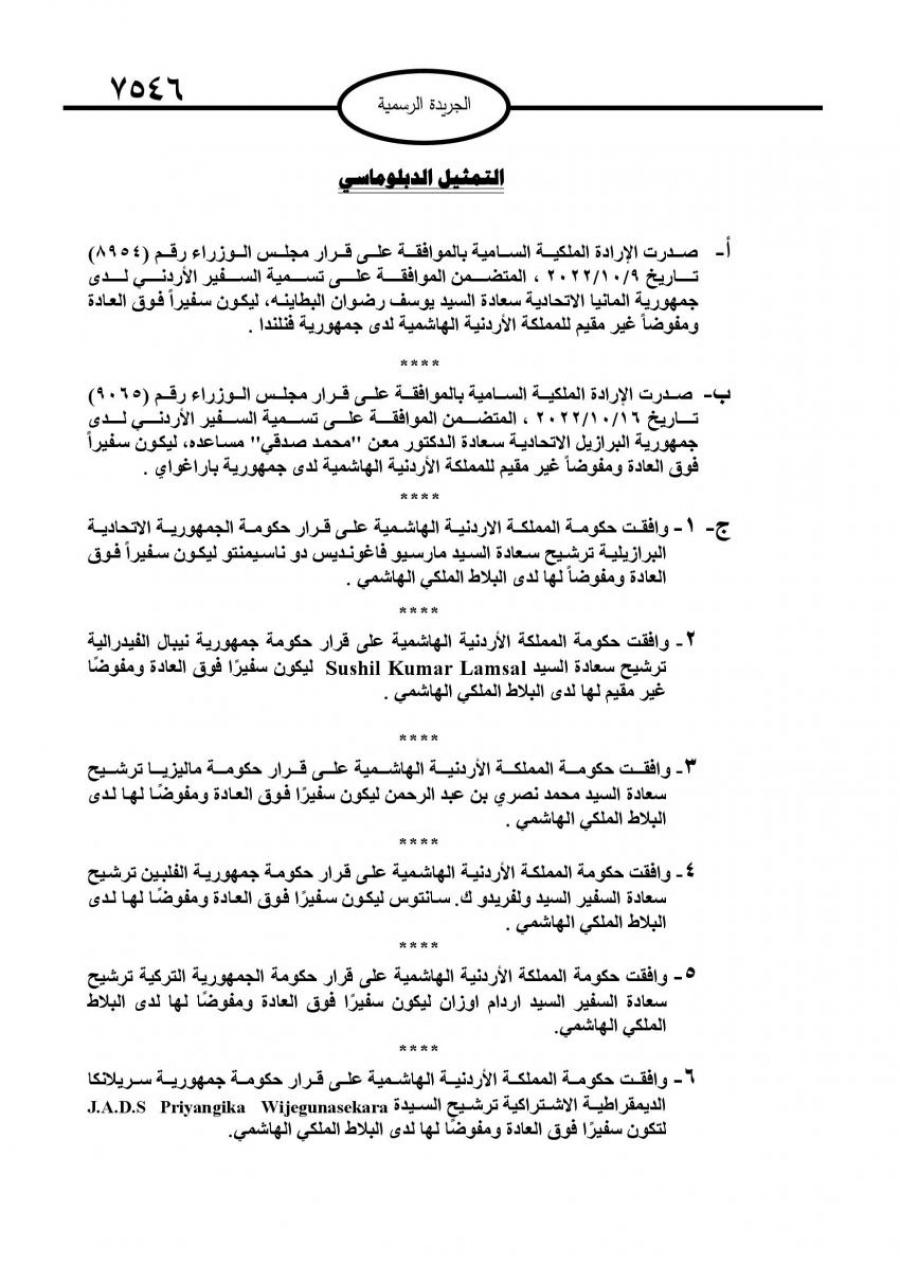 الدكتور نضال أبو عرابي العدوان إلى ديوان التشريع والرأي في رئاسة الوزراء