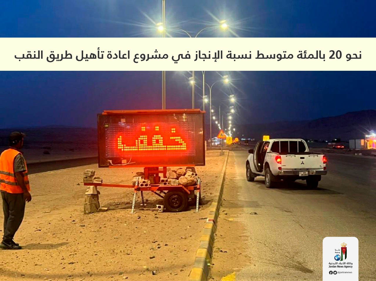 الاشغال: الانتهاء من اعادة تأهيل طريق النقب خلال الربع الثاني العام المقبل