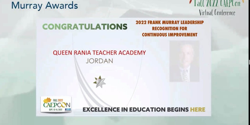 أكاديمية الملكة رانيا لتدريب المعلمين تحصل على جائزة فرانك موراي للقيادة