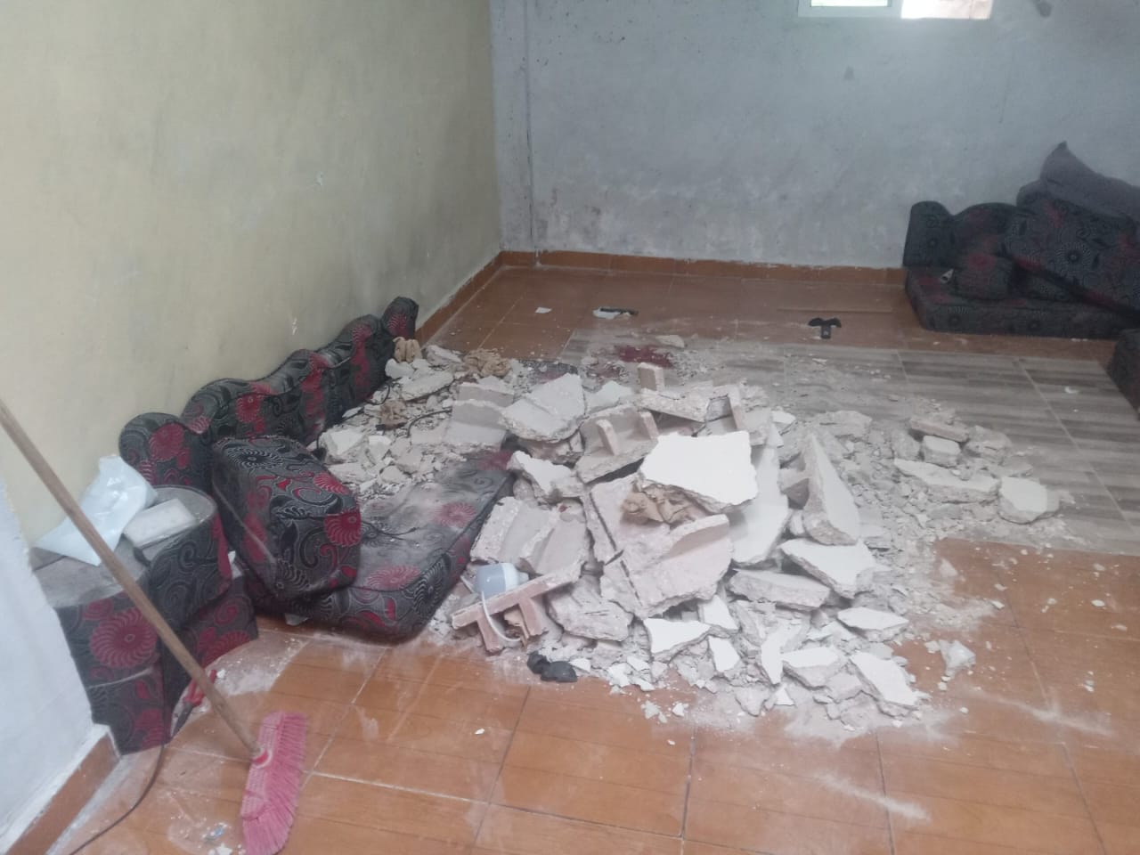 الدبوبي يتفقد منزل بمخيم البقعة تعرض لانهيار بالسقف