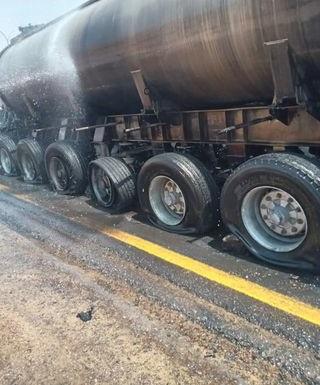 احتراق إطارات صهريج محمل بحامض الفسفوريك