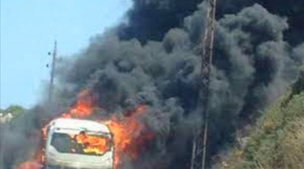 احتراق باص " تحت الصيانة" تابع لهيئة الطاقة والثروة المعدنية