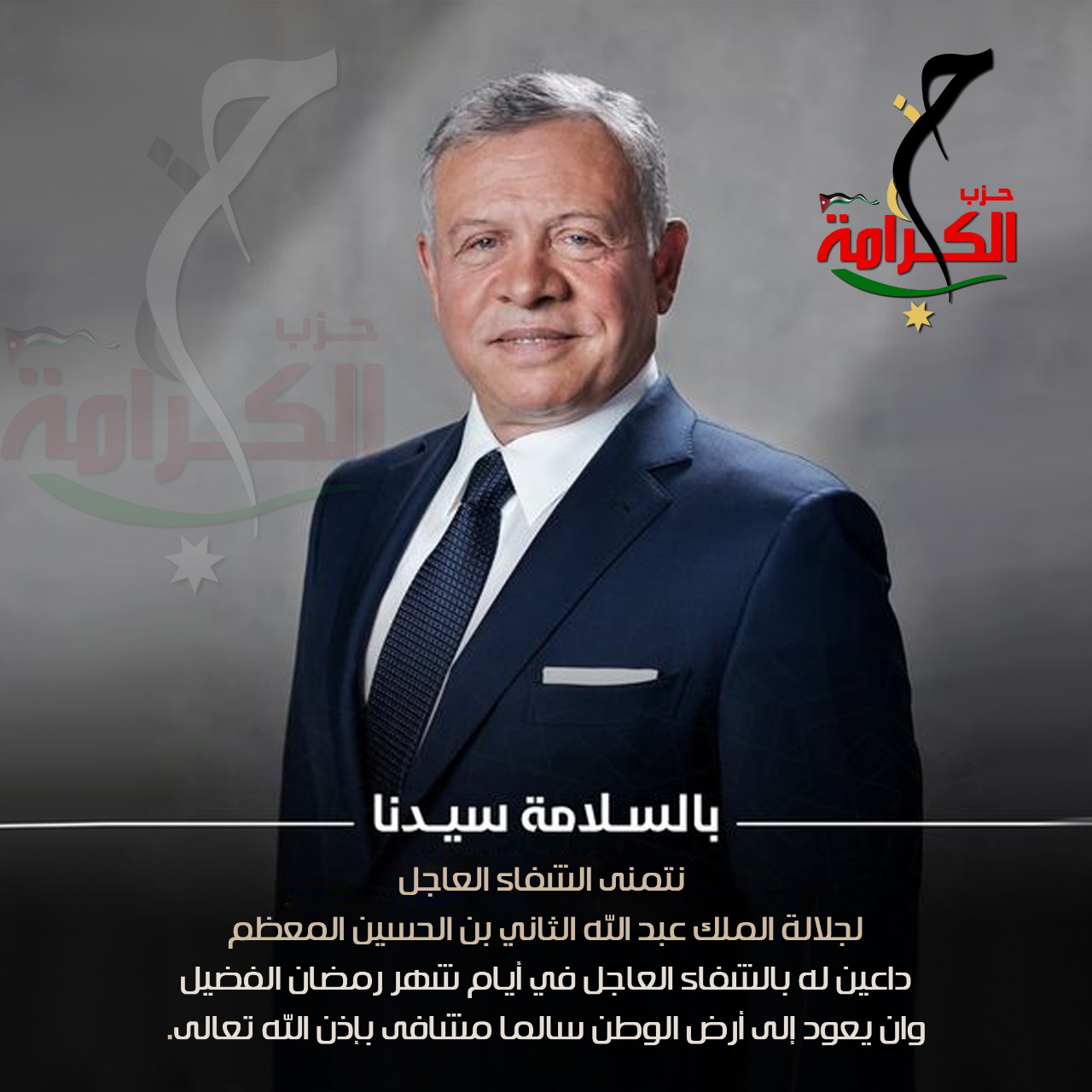 حزب الكرامة” تحت التأسيس” يتمنى الشفاء لجلالة الملك .