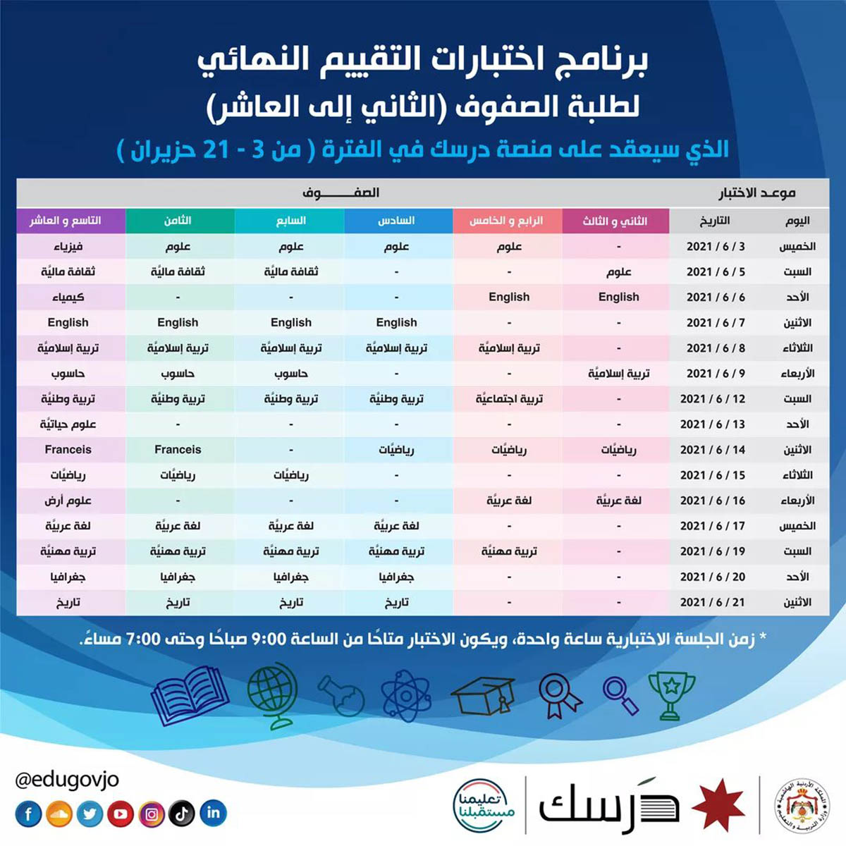 التربية تعلن برنامج اختبار التقييم النهائي لطلبة المدارس للفصل الدراسي الثاني