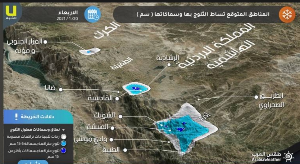 أخبار الاردن:"طقس العرب" المناطق المشمولة بتوقعات تساقط الثلوج يوم الأربعاء