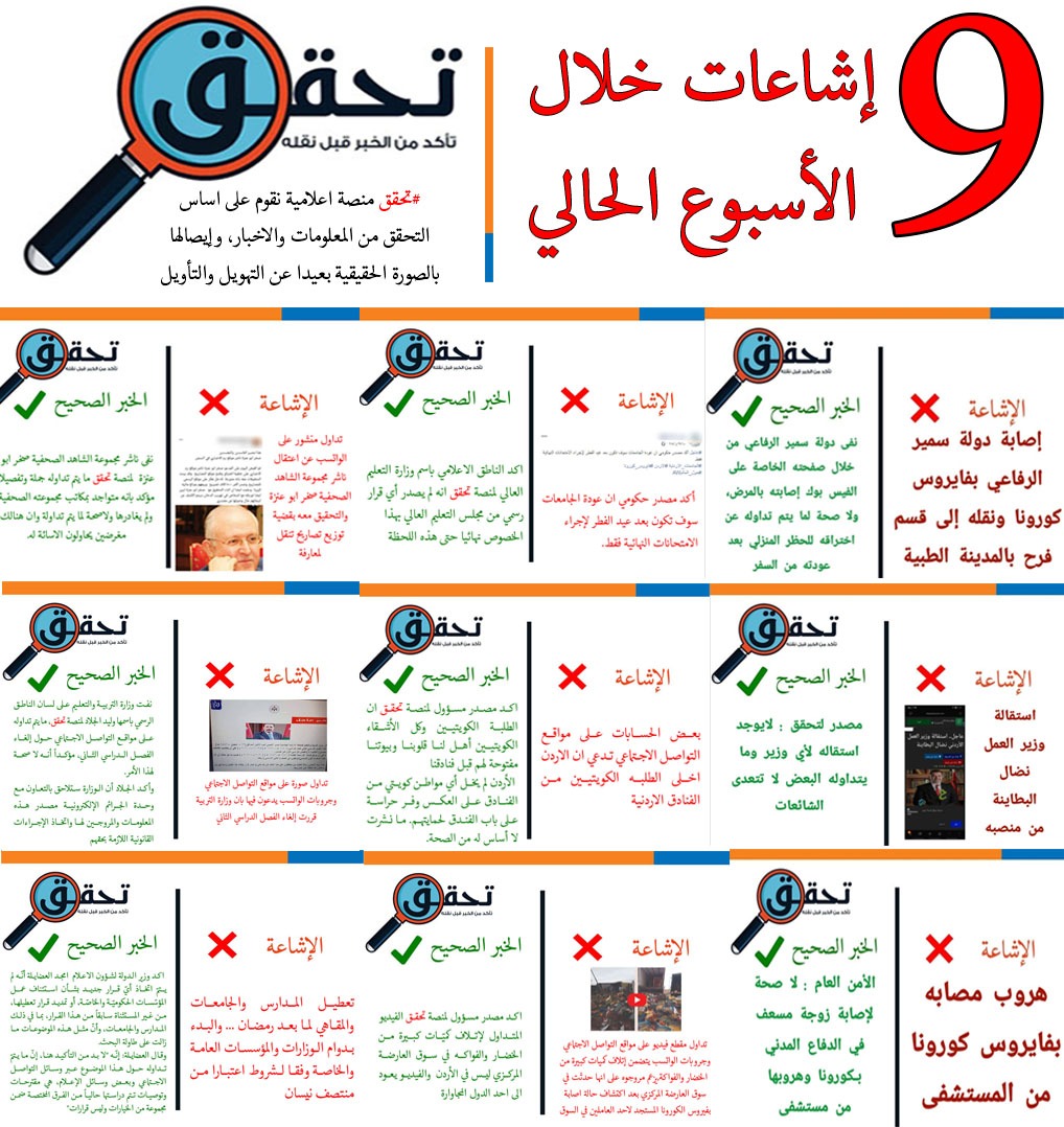 منصة "تحقق" ترصد 9 إشاعات خلال الاسبوع