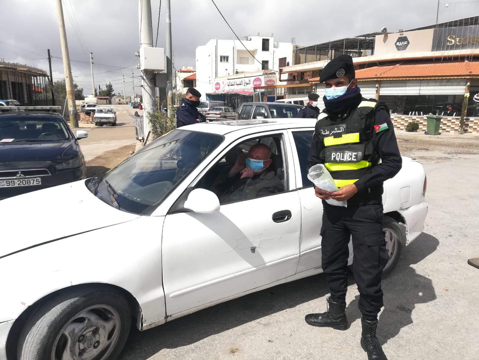 شرطة الكرك توزع الكمامات على المواطنين