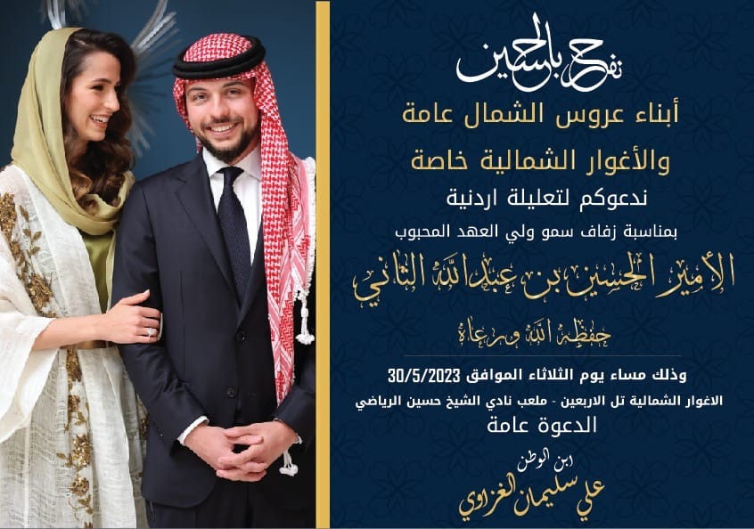 مديرية تفتيش عمل عمان الثانية تهنئ جلالة الملك عبدالله الثاني والملكة رانيا بزفاف ولي العهد الأمير الحسين